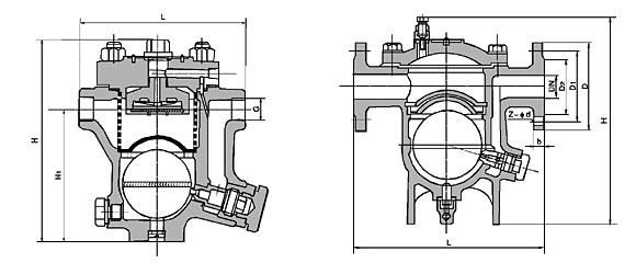 自由浮球式疏水閥工作原理: 自由浮球式蒸汽疏水閥的結構簡單,內部只有一個精細研磨的不銹鋼空心浮球,既是浮子又是啟閉件,無易損零件,使用壽命很長。裝置剛起動時,管道內出現空氣和低溫冷凝水,手動排空氣閥能迅速排除不凝結氣體.疏水閥開始進入工作狀態.低溫冷凝水流進疏水閥,這時閥腔內的浮球隨凝結水液位的高低而升降,自動調節閥孔的開度,能連續的(不是間斷)排放凝結水.由于自由浮球式疏水閥的閥座孔總是處于凝結水液位以下,形成水封,水汽自然分離,工作時達到無蒸汽泄漏.該閥的最小工作壓力為0.01Mpa,從0.01Mpa至最高工作壓力范圍內不受溫度和工作壓力波動的影響,能連續工作,其最小過冷度約為0℃,由于該閥能自動、連續地排除凝結水,加熱設備內不會有水積聚,能使加熱設備達到最佳換熱效率.是生產工藝加熱設備的最理想疏水閥之一.