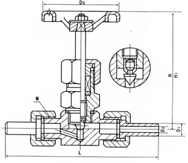 【外螺紋帶焊接管針型閥結構圖及連接尺寸】