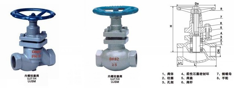 內螺紋柱塞閥可在任意位置安裝,介質流動方向見閥體上箭頭所示。經過一段時間的使用密封環(huán)如有磨損及滲漏必須先將閥門關閉后,在將法蘭螺栓均勻的略加旋緊以至于下滲漏即可。同時更換時應防止內螺紋柱塞閥和新裝密封環(huán)裂痕和碰傷。在短時間內,冷熱交替溫差較大的管道中,柱塞閥不能使用。