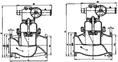 【電動法蘭柱塞閥外形結構圖】