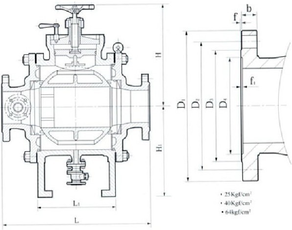 整體式清管閥(圖3)閥體為整體鑄(鍛)造,其上部設有閥蓋,球體、密封圈和閥座等,閥內件均從閥體頂部裝入。閥門在檢修和更換座時,不必將整臺清管閥從管線上拆下,僅打開閥蓋,將球體和閥座取出即可,可實現在管線上維修,這是整體式清管閥的最突出優點。由于閥體為整體,閥體和閥蓋體積大、質量大,難以制成大口徑,閥門成本高。