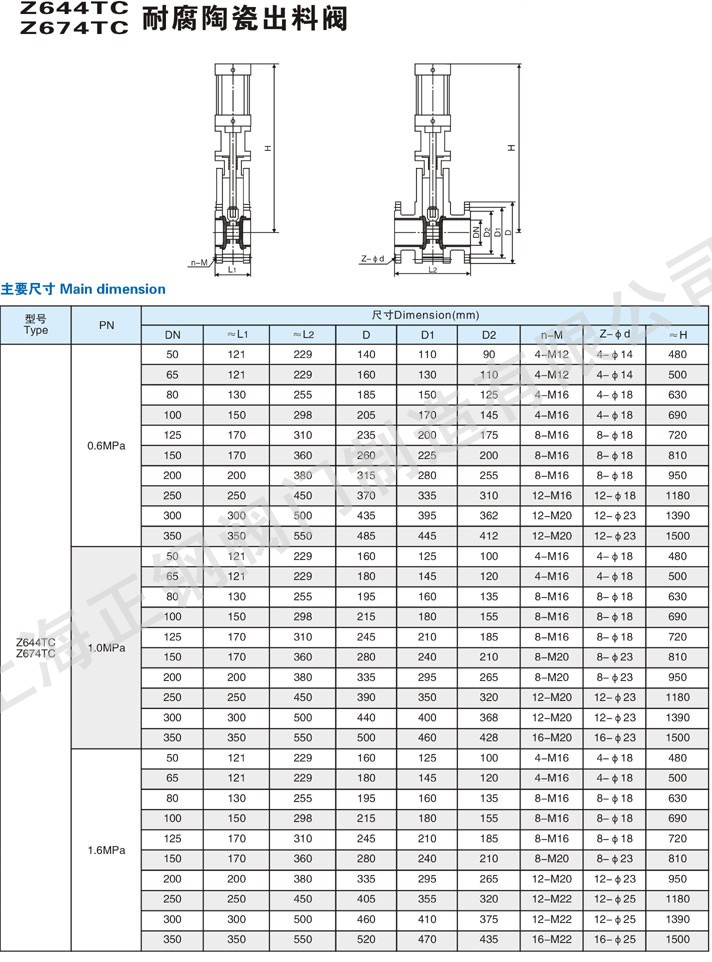 Z644TC耐腐陶瓷出料閥結(jié)構(gòu)尺寸