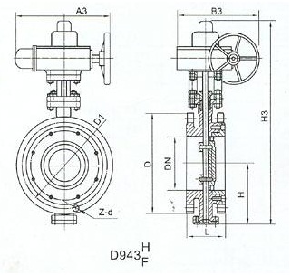 電動法蘭硬密封蝶閥 外形尺寸