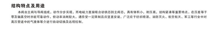 特點(diǎn):在零壓差或真空、高壓時(shí)亦能可*動(dòng)作,但功率較大,要求必須水平安裝。