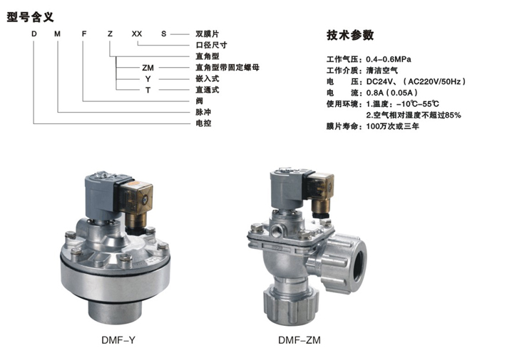 DMF-ZM帶固定螺母電磁脈沖閥訂貨說明: