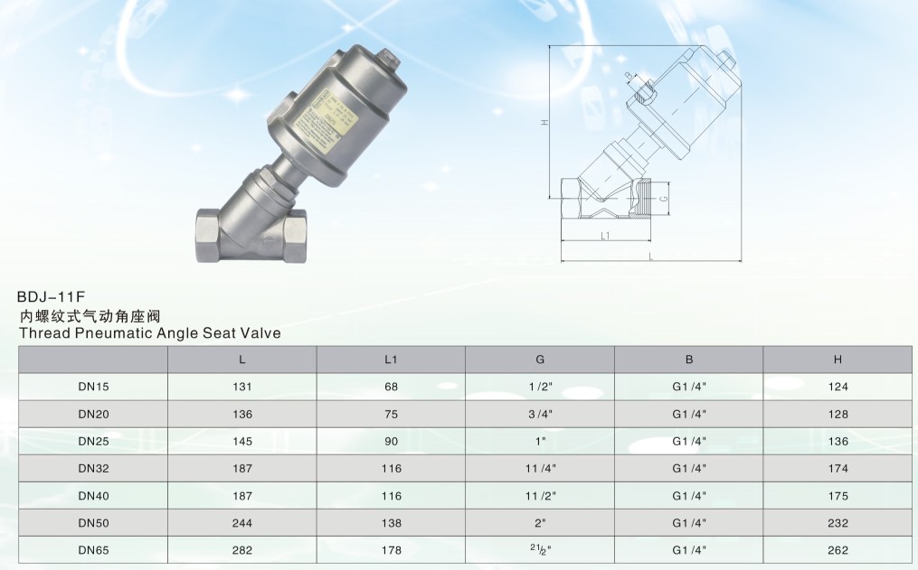 『內螺紋氣動角座閥』專業生產廠家,由正鋼自主生產的【角座閥】質量可靠、價格合理、售后服務完善。『內螺紋氣動角座閥』適用于各種輕重工業及樓宇管道。正鋼品質,全球共享!【角座閥】廣泛應用于:化工、石化、石油、造紙、采礦、電力、液化氣、食品、制藥、給排水、市政、機械設備配套、電子工業,城建等領域。