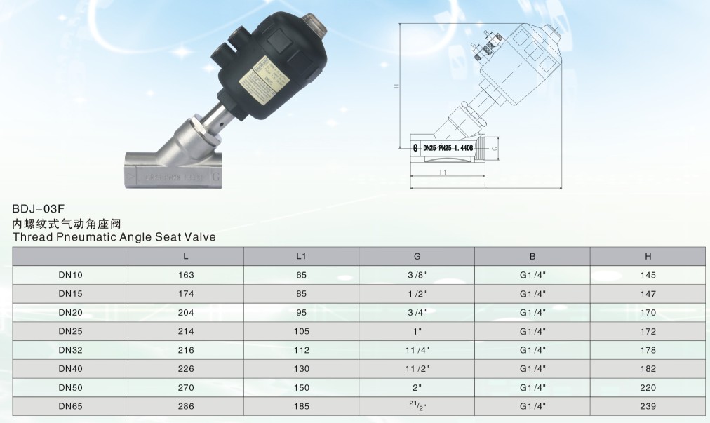 『內螺紋氣動角座閥』專業生產廠家,由正鋼自主生產的【角座閥】質量可靠、價格合理、售后服務完善!內螺紋氣動角座閥』適用于各種輕重工業及樓宇管道。正鋼品質,全球共享!【角座閥】廣泛應用于:化工、石化、石油、造紙、采礦、電力、液化氣、食品、制藥、給排水、市政、機械設備配套、電子工業,城建等領域。