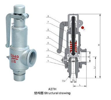 A27型帶扳手彈簧微啟式安全閥是一種用于無毒無害及非易燃易爆液體介質的壓力管道及容器等設備作為超壓保護的最終安全保護裝置,該類型安全閥采用彈簧直接載荷式,螺紋連接,閥蓋敞開式結構,帶提升扳手。