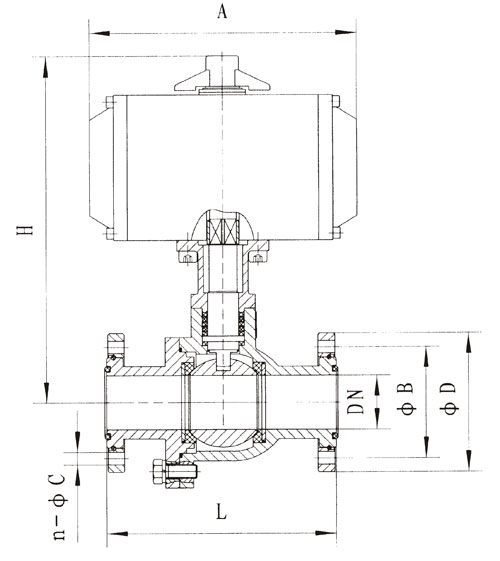 原理:采用電動執行器驅動閥桿轉 90º達到開關目的。