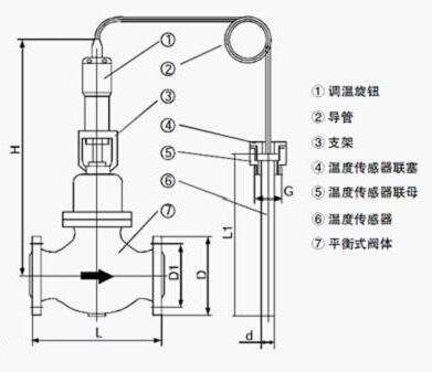 自力式溫度控制閥結構示意圖