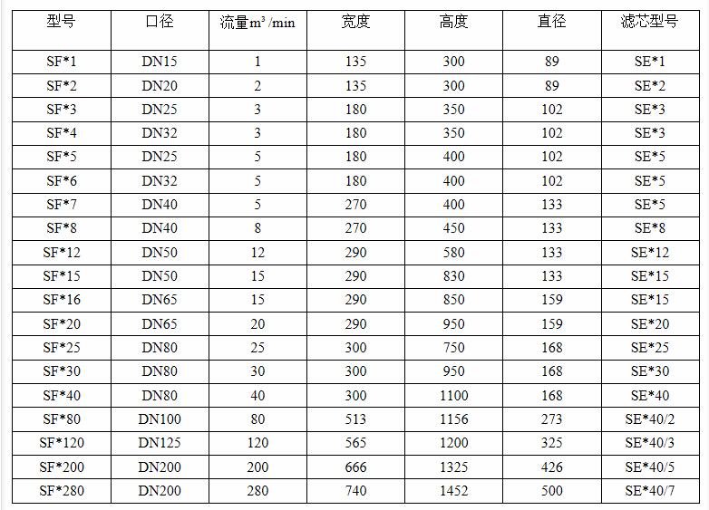 標準配置過濾器包括過濾器主體、內置濾芯,手動排水閥,內螺紋,SF*8以上為法蘭連接。