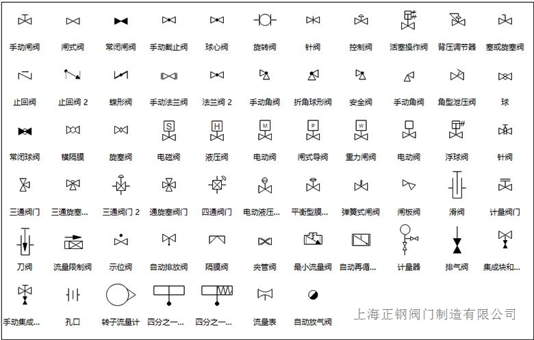 閥門圖形符號是對閥門簡單的圖形標注,一般用于制圖等領域。閥門圖形符號包含了球閥、蝶閥、止回閥等多種常用閥門的符號信息。下面是上海正鋼閥門制造有限公司對各類閥門在圖紙中符號進行標注,希望能對廣大有所幫助。